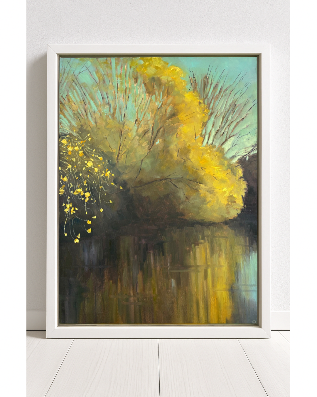 Original Oil Painting in a white wood tray frame